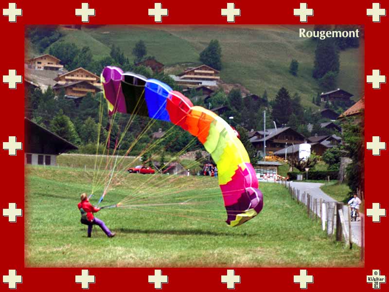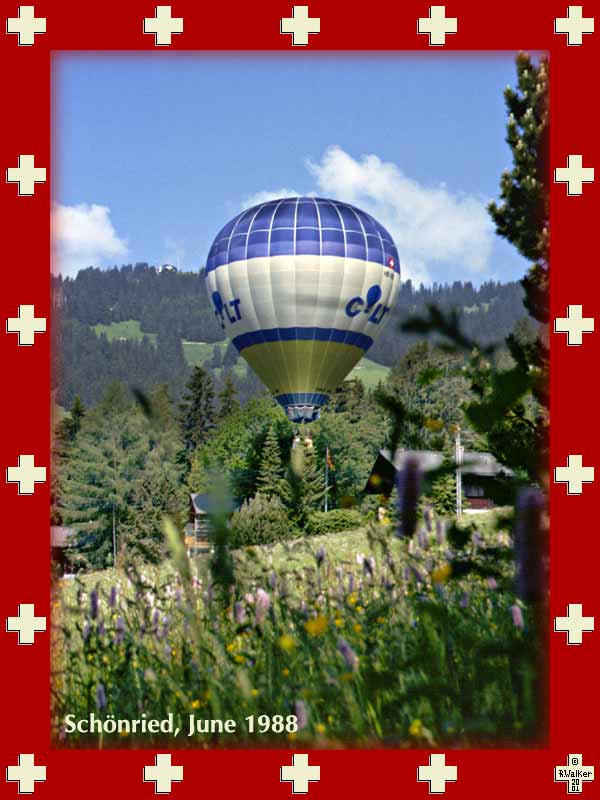 Balloon of the well-known balloonist Hans Buker, ascending from the tennis courts in Gstaad, 1995